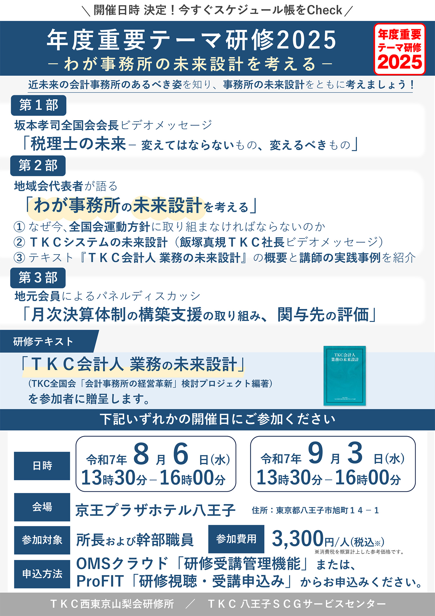 2025/9/3 | TKC年度重要テーマ研修「わが事務所の未来設計を考える」の講師を担当しました |