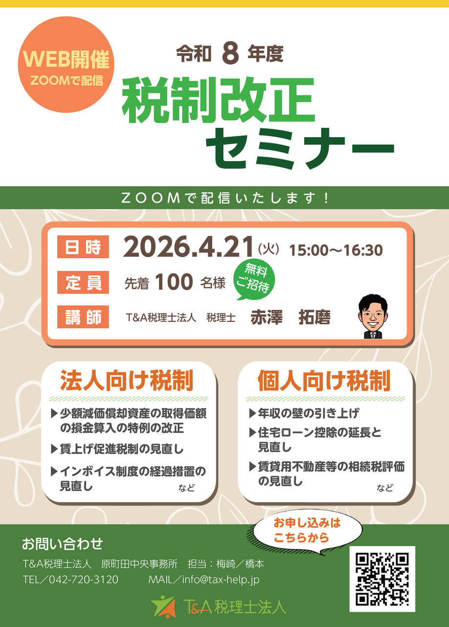 HOME > セミナー > 令和8年度 税制改正セミナー