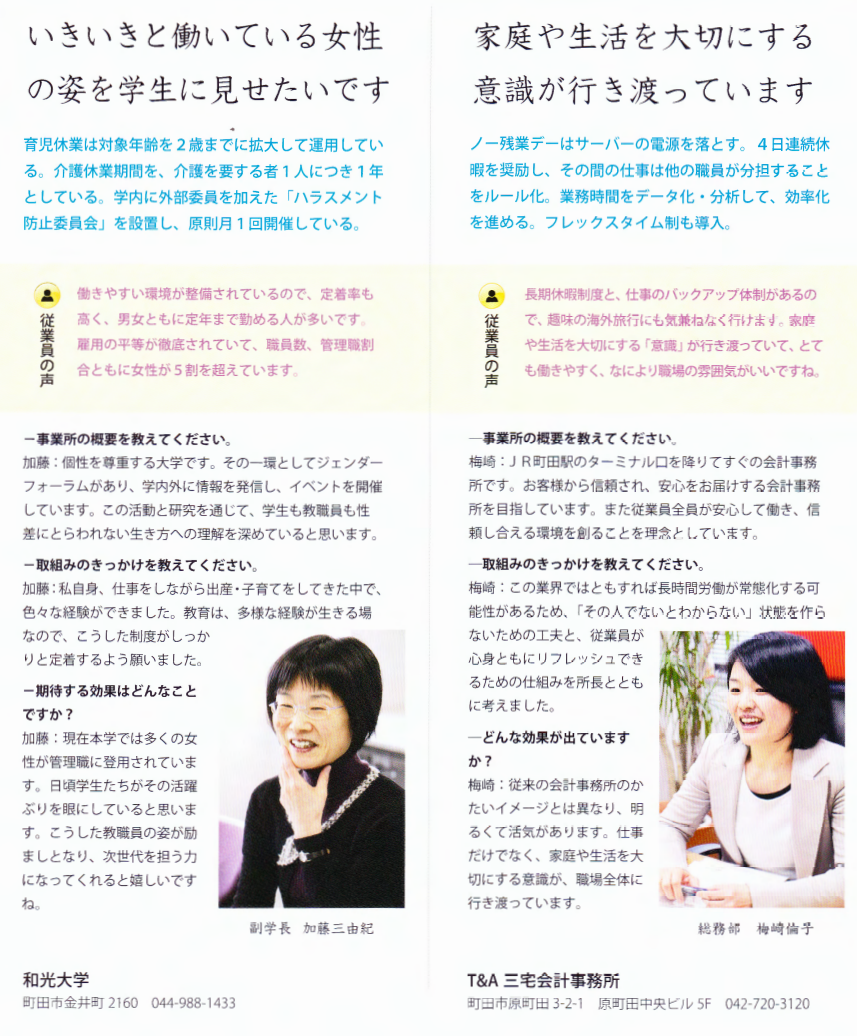 町田市「仕事と家庭の両立推進企業賞」を受賞町田市が推進するワーク・ライフ・バランスの取り組みにおいて、「町田市仕事と家庭の両立推進企業賞」を受賞しました。 当社では、専門職として長く安心して働き続けられる環境づくりを大切にしています。 こうした取り組みが評価され、町田市のワーク・ライフ・バランス推進企業として紹介されています。 これからも、職員一人ひとりが安心して働き続けられる職場づくりを大切にし、 その積み重ねが、お客様へのより良いサービスにつながると考えています。 |